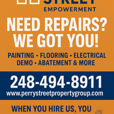 Perry Street Empowerment is a team of local contractors, mentors, and community partners who believe that the people who live in Pontiac should also be the people who build Pontiac.